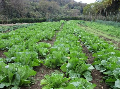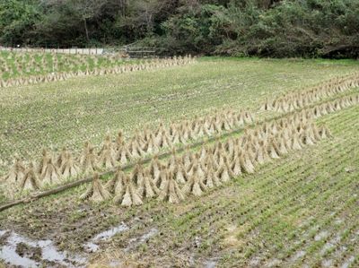 白菜・大根・ネギ畑 今時珍しい稲藁干し