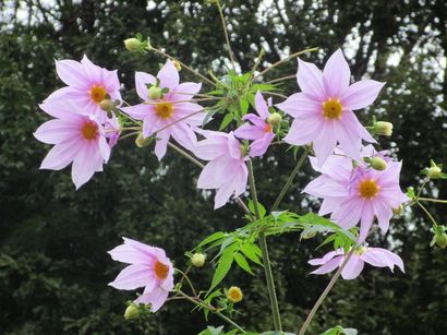 道端で優雅に咲く皇帝ダリア 稲刈り後の田んぼ