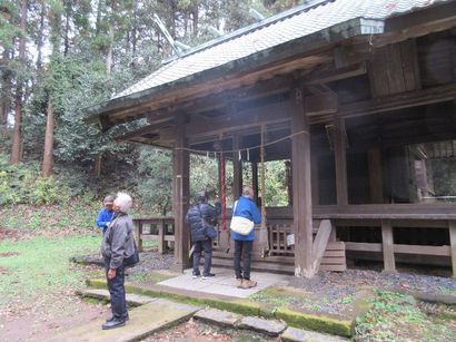 やがて舞岡八幡宮に到着。見上げる急階段に上る気力が薄れて入口で拝礼する人もいたが、例のプライドとやらが騒ぐのか、結局急階段を上っての参拝となった。