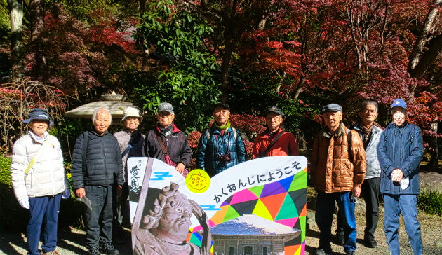 覚園寺の出口で記念写真