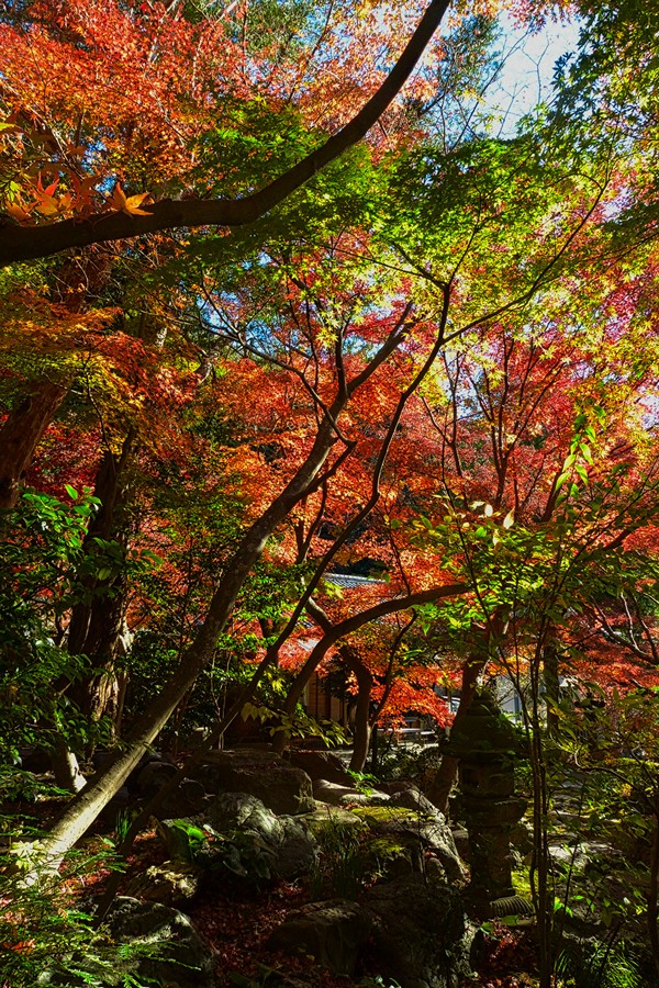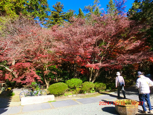 山門前で写真を撮る。そして、国史跡の境内に入ると素晴らしい紅葉に眼を奪われた。