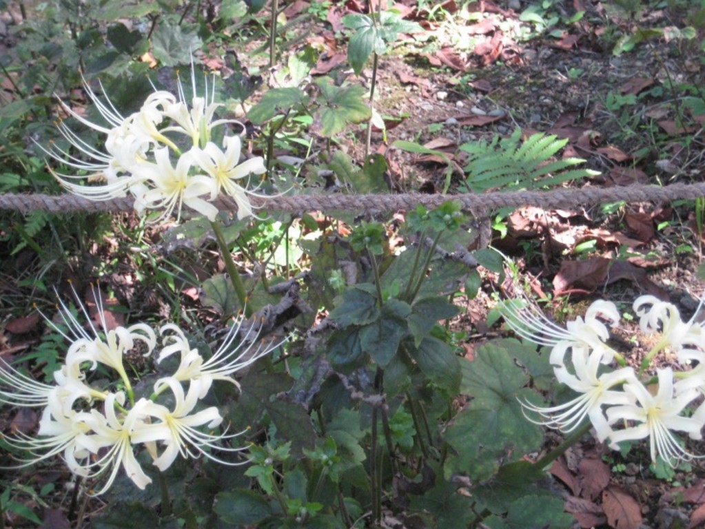芙容、赤と白の彼岸花、百日紅(サルスベリ)に秋明菊もひっそりと咲いていた。。