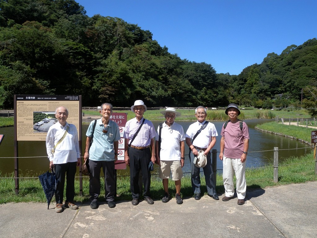 鎌倉市がこの土地を買収して史跡公園として整備している。丁度出会った整備のおじさんに話を聞いた。田圃だった土を掘り起こし、かつてのように池を作った。田圃のいい土なのにそれを捨ててしまい勿体ないと嘆いていた。ここでの写真には先を急いでいた二人は写っていない。