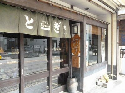 古都らしく風情のある店が多い。上左は「砥ぎ屋」、上右は「わらび餅屋」である。