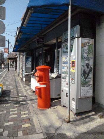 次の目的地「六地蔵」に向かうメンバー、まだ元気。昔懐かしい赤いポスト・・まだ現役。