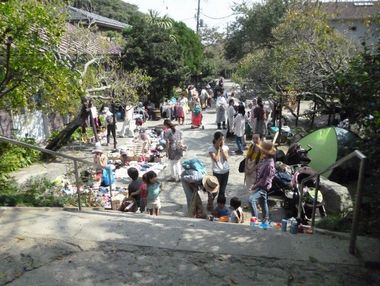 次の「光則寺」は丁度「のみの市」が境内で開催されており大勢の若い母親達で大賑わいであった。すぐ傍に幼稚園があるので子供の衣類の譲り合いの場となっているようで、母親達の生活の知恵と逞しさが感じられ心の和む光景であった。