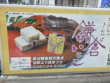 鎌倉サブレ、鎌倉マドレーヌ、鎌倉どら焼き、鎌倉味噌カレー、鎌倉山チーズケーキ、鎌倉クーヘン・・等などであるがどれも今まで買っていったものなので迷っていると、長谷駅で「鎌倉いとこ」の看板を見つけたので早速その店に・・