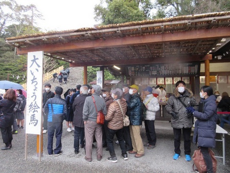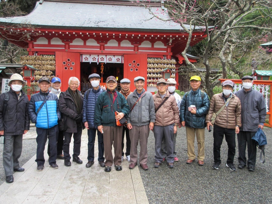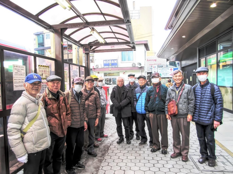 午前10時前にはいつもの鎌倉駅交番前に全員集合した。折しも大騒ぎの中国発コロナウイルスの事もあり、中国人観光客の多い鎌倉へ行くのだからマスク位着用しようとの事前連絡もあり、珍しい光景となった。総勢13名、先ずは鶴岡八幡宮に参拝するべく出発。
