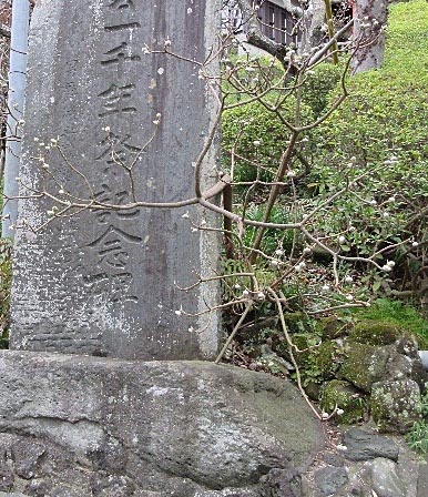 菅公碑を抱く蝋梅(小さすぎるか) 左の写真を拡大