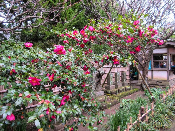 萩寺とも呼ばれる宝戒寺の冬の花々を愛でて、東勝寺跡経由「腹切りやぐら」へ向かう。