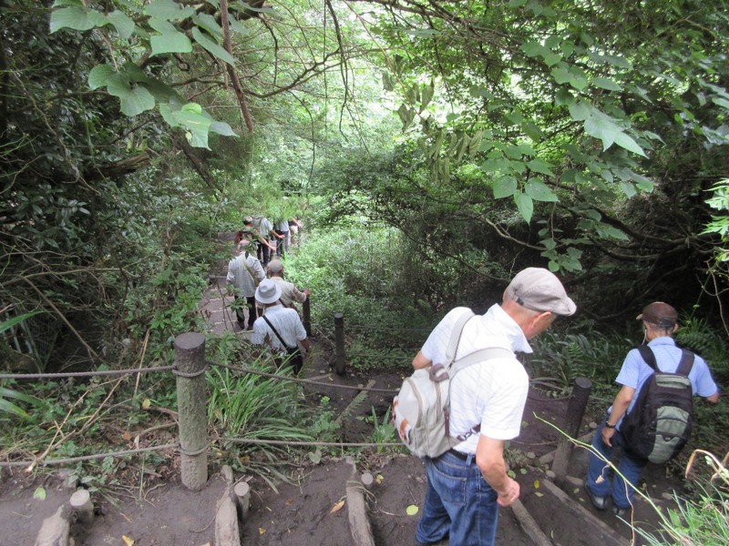 結構な上り下りの坂道や階段の連続で、歩きごたえがある。足元に注意しながらの一歩一