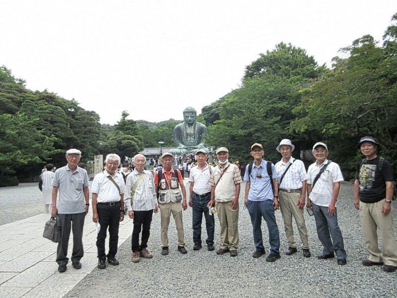 鎌倉大仏前で10人の元気なおじさんたちの勢揃い