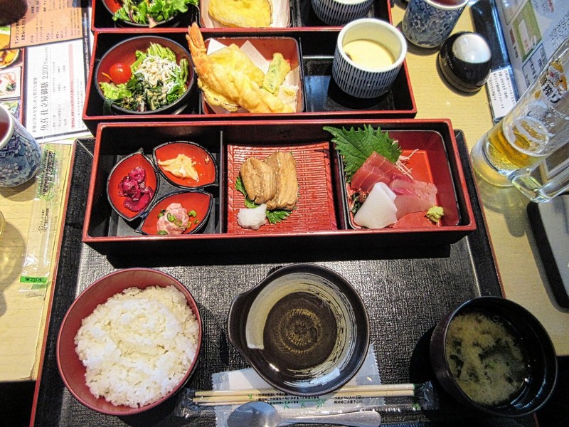 今回の昼食は鎌倉駅前のビル3階、行きつけの仕立屋で「仕立屋御膳」に生ビール。