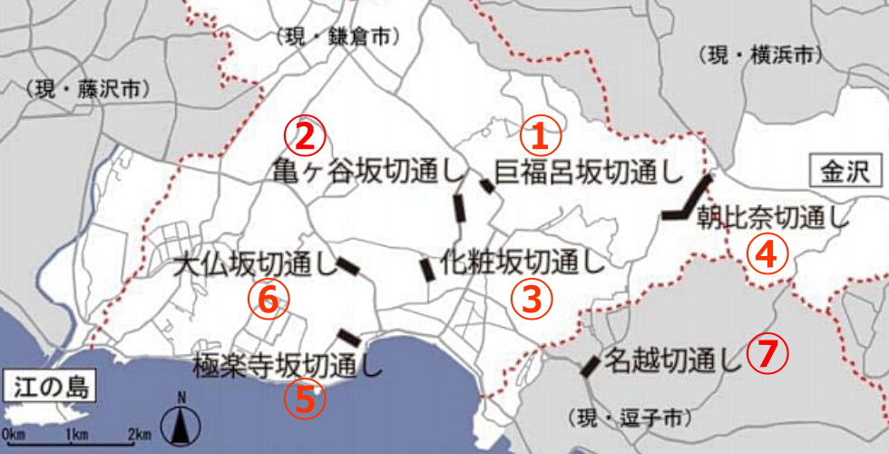 この大仏切通は古来鎌倉から藤沢へ抜けて京都へ行く主幹道であったという。頼朝以来北条