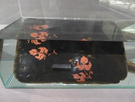 かわらけ溜りから出土の饗宴酒器        色褪せぬ漆器の水中保管
