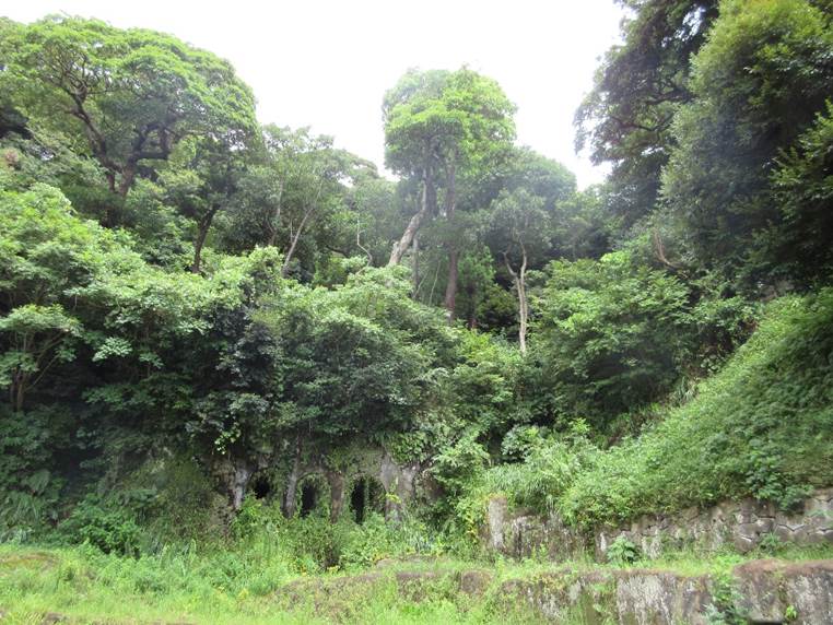 周囲を山の緑に覆われた広大な庭園 昔ながらのガマ跡も残る