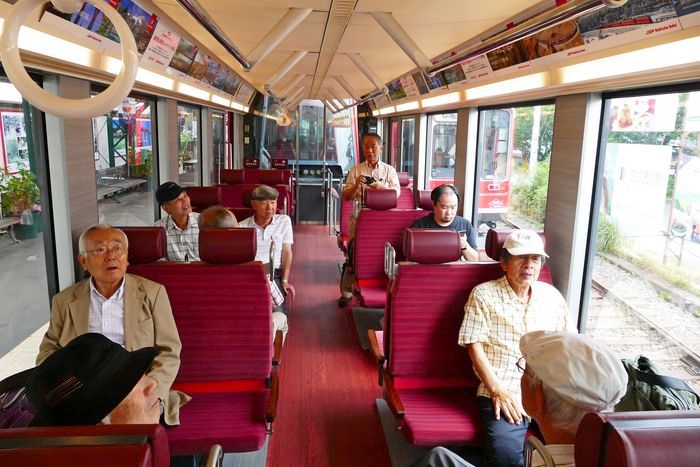 まだ朝早くそれに下り電車のせいか、ほとんどわれわれの貸し切り状態である。