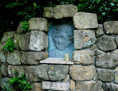 澤田美喜のレリーフ 入り口の門封鎖のため退出する
