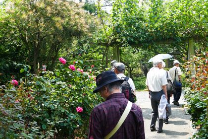最初にバラ園に入る。吉田はこよなくバラを愛し、存命中はもっと大きなバラ園だったが、後にかなりの面積が