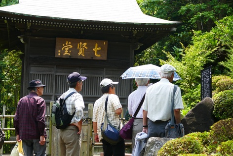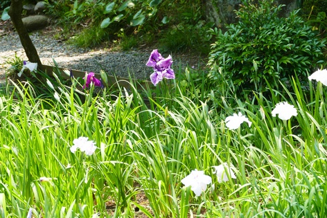 庭には季節の花である花菖蒲が咲き始めていた。つづいて、庭のほとりにある七賢堂を見る。
