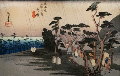 大磯駅の駅舎には歌川(安藤)広重が描いた「東海道五十三次之内 大礒 虎ヶ雨」が飾られていた。