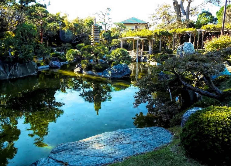 しばし休憩の後、兜門(内門)をくぐり、いよいよ邸内敷地へと入る。まずは庭園を見学。池を中心とした回遊式の典型的な日本庭園で吉田茂は四季折々の花が咲くこの庭園を散歩することをこよなく愛したという。