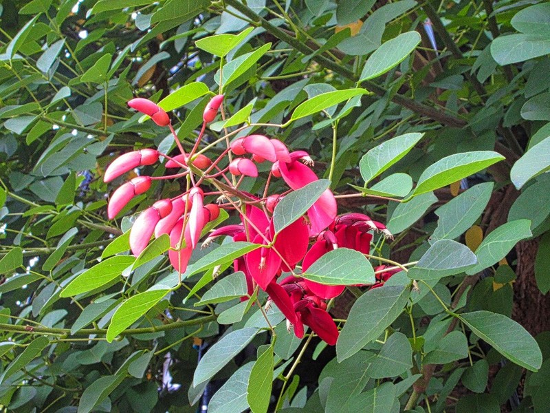イギリス風庭園に咲き残る秋ばら 大分工場の想い出が深い 海紅豆