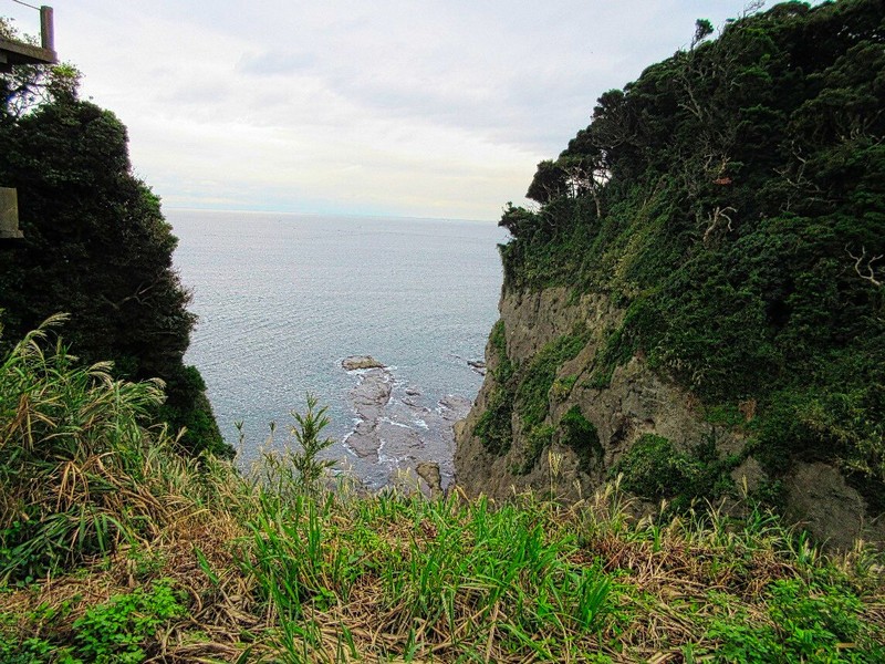 江の島は上から見るとヒョウタンの形をしており、そのくびれ部分(山ふたつ)は深い断崖となっている。島の南西側は岩礁地帯で荒波に浸食された洞窟など荒磯の景観が遠望できる。