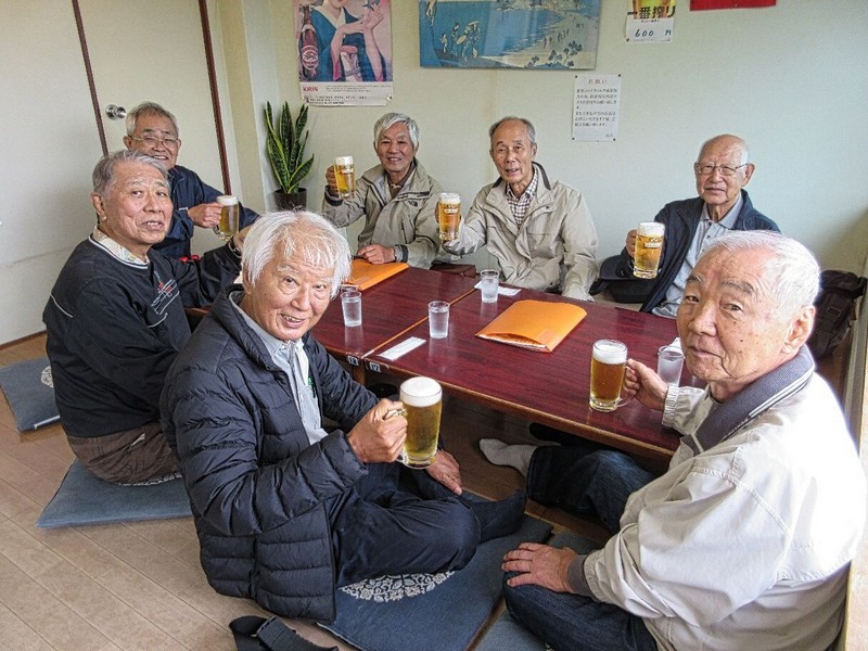 実はこの写真は昼食後のもの どおりで皆満足げな顔をしている(顔も赤い!)