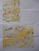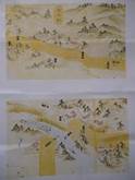 「小池家の古民家入り口(下)と母屋出発時、柏木さんが事前に用意され全員に配られた「江の島道」の古地図と干支の十干十二支図(多謝)