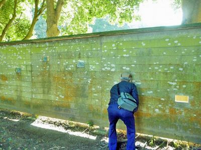 最初に出会った公園の隅にあった道標、見過ごしてしまうほどひっそりと佇んで・・・