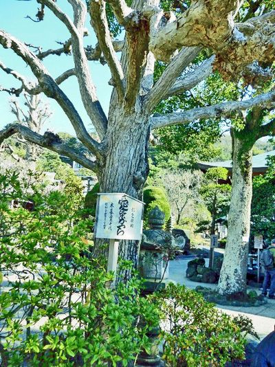 左は日蓮聖人像と本殿、右は「愛染かつら」の木愛染明王を祀ってある縁からだそうですが、昔日の松竹の大スター女優の木暮三千代が植えたとの解説があった。