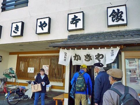 いよいよ食事処へ移動。 幹事が予約してあった、地元の名店「かきや」の2階に落ち着く。