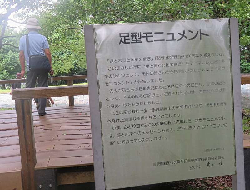 もちろん、近年作られたもので、藤沢市政50年を記念して1990年に市民から募集して足型を作成したモニュメントである。