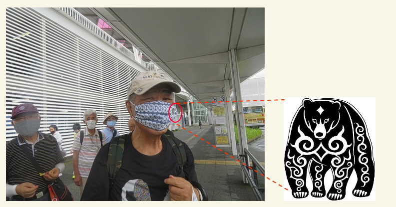 石塚さんのマスクにはヒグマの模様が描かれたシールが貼ってあった。