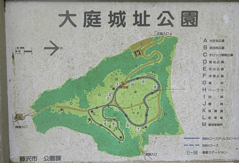 大庭城址公園は藤沢駅から西に4kmの引地川沿いにあり、古くから大庭城山と呼ばれ城址としての歴史性とともに、緑の山として親しまれてきた。