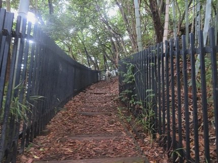 坂道と階段で広場方向に 広場に登り着く
