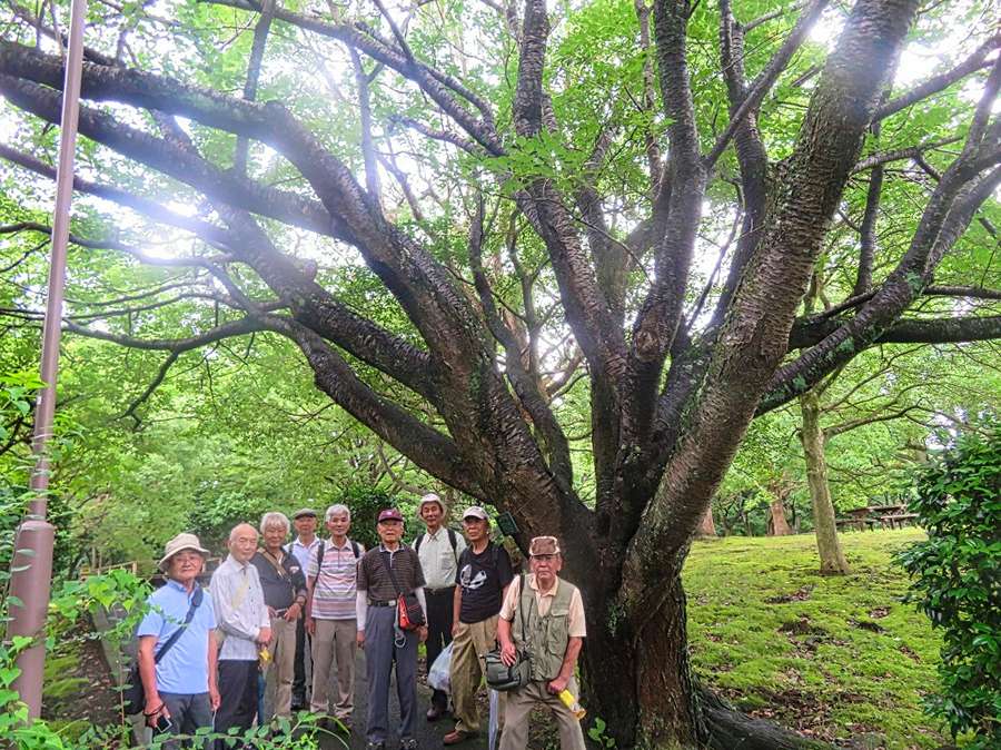 公園の名木オオシマザクラの下で集合写真