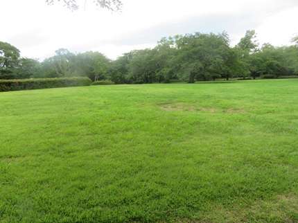 進行方向左手が広い芝生の広場大芝生広場である。