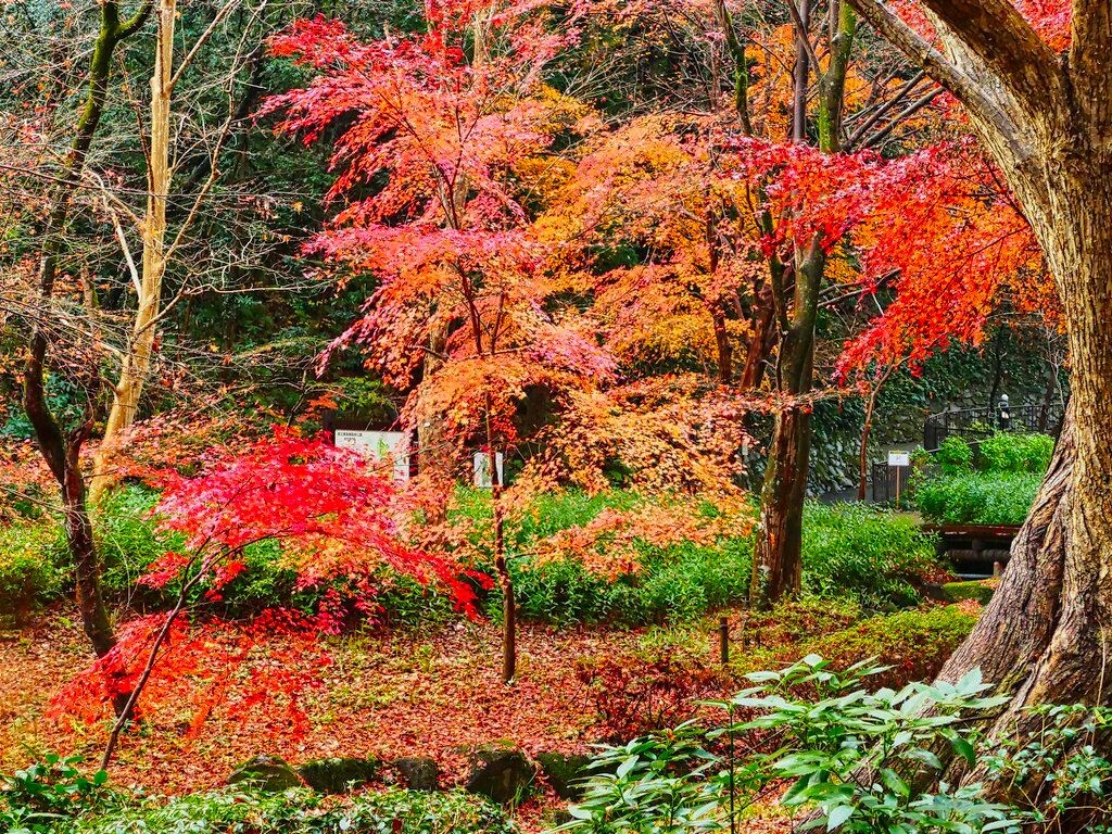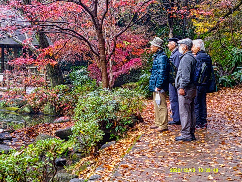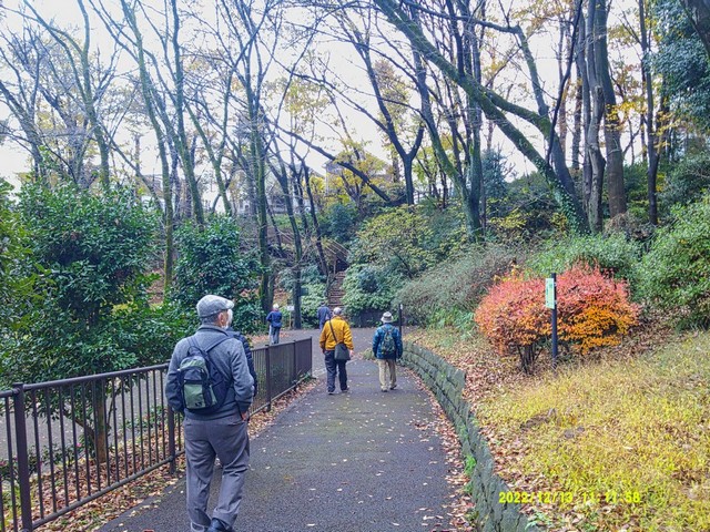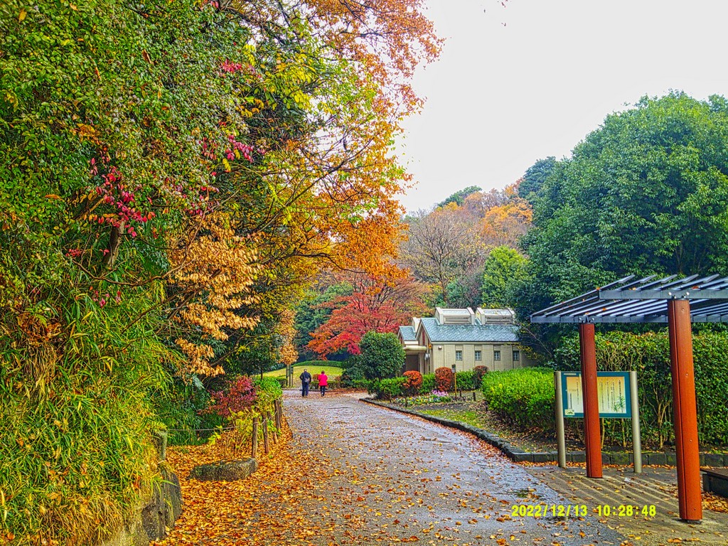 12月も中旬になり晩秋も過ぎたのに公園内はモミジやケヤキの紅葉が目を楽しませてくれる。