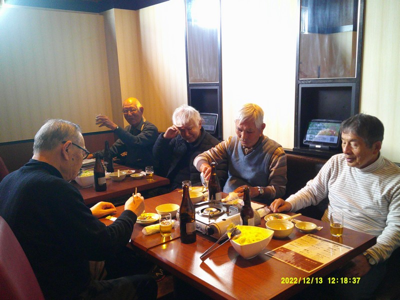 待っていた荒木田さんを加えて、9名でビールで乾杯、2022年度忘年会をスタート。