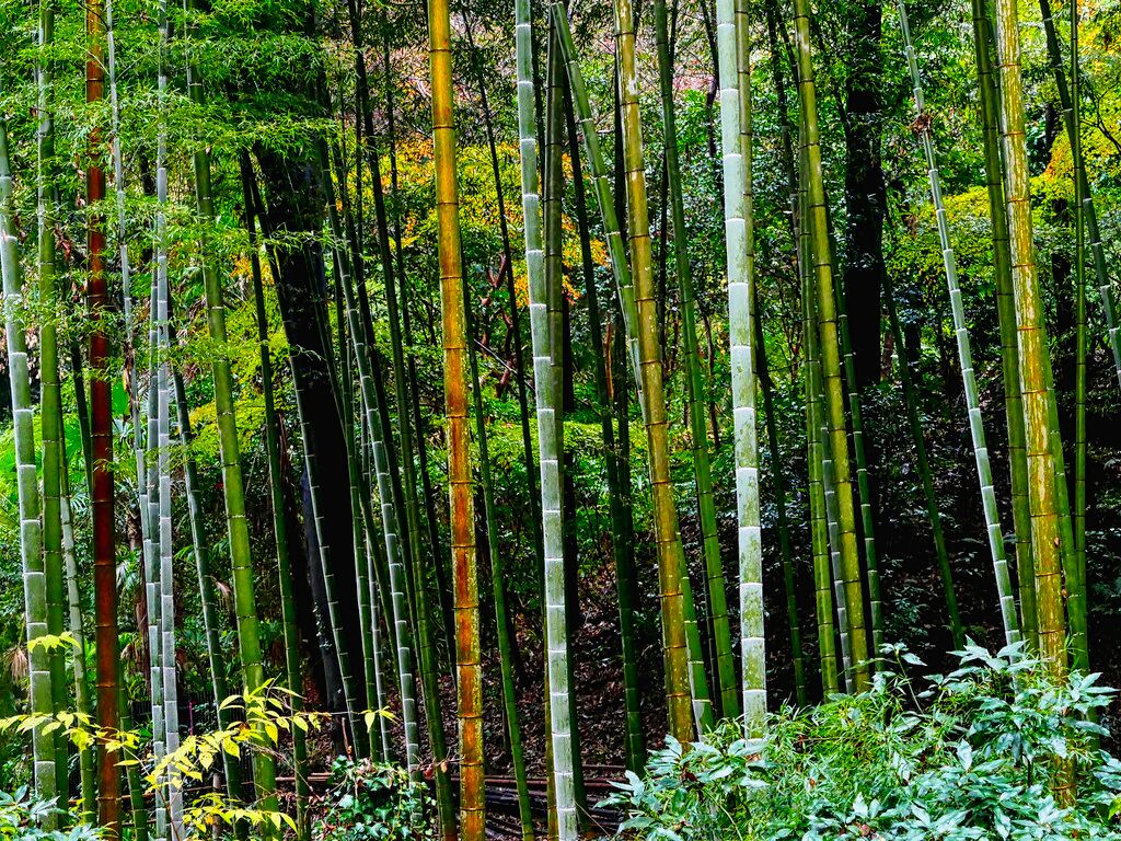 湿生植物園をさらに奥に進むと右手に素晴らしい竹林が表れる。背丈が高いのはもちろん節間が長いのが、樹林だけでなく竹林でも、古いが大きなものが生き永らえているのは素晴らしい。