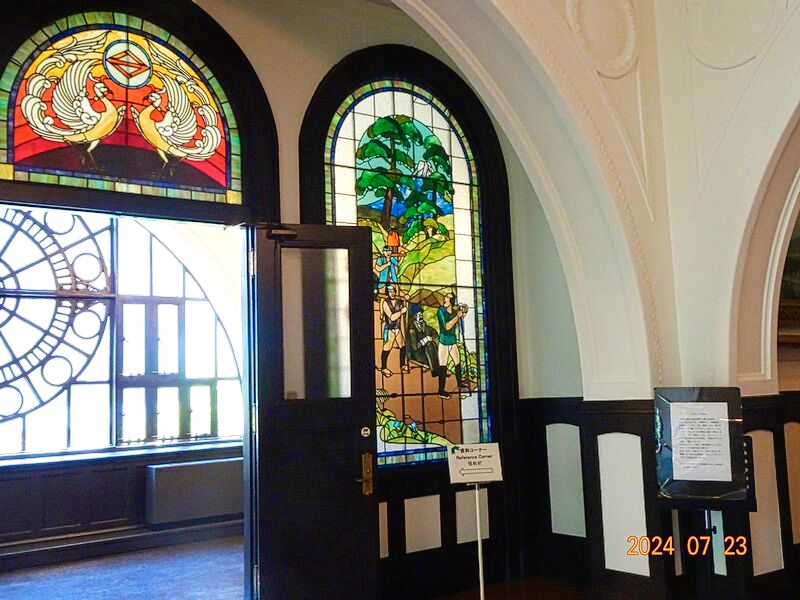 大正時代の雰囲気を伝える500人収容の講堂や、大広間のステントグラスを興味深く見学した。
