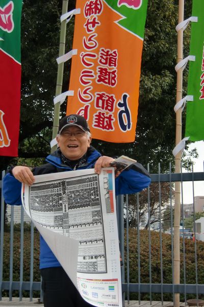 小野さんが相撲博物館と隣接する相撲協会事務所で、まもなく始まる初場所の番付表を購入。