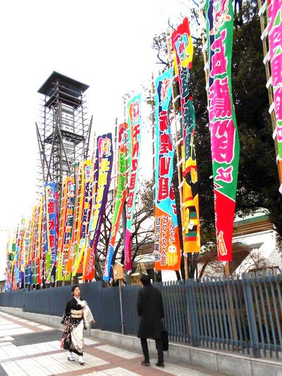 駅前に出るとそこもやはり相撲の世界、国技館の建物やのぼり、櫓などおなじみの風景が飛び込んでくる。