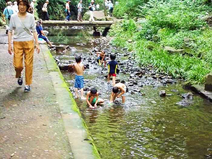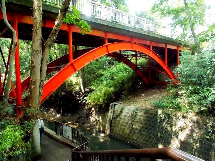 南口を出てほんの少し歩き、右に折れると谷沢川に架かるゴルフ橋に着く。この橋のたもとに等々力渓谷公園への