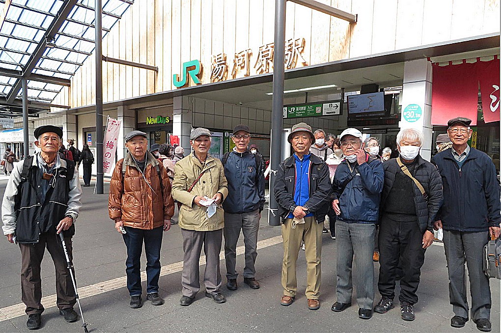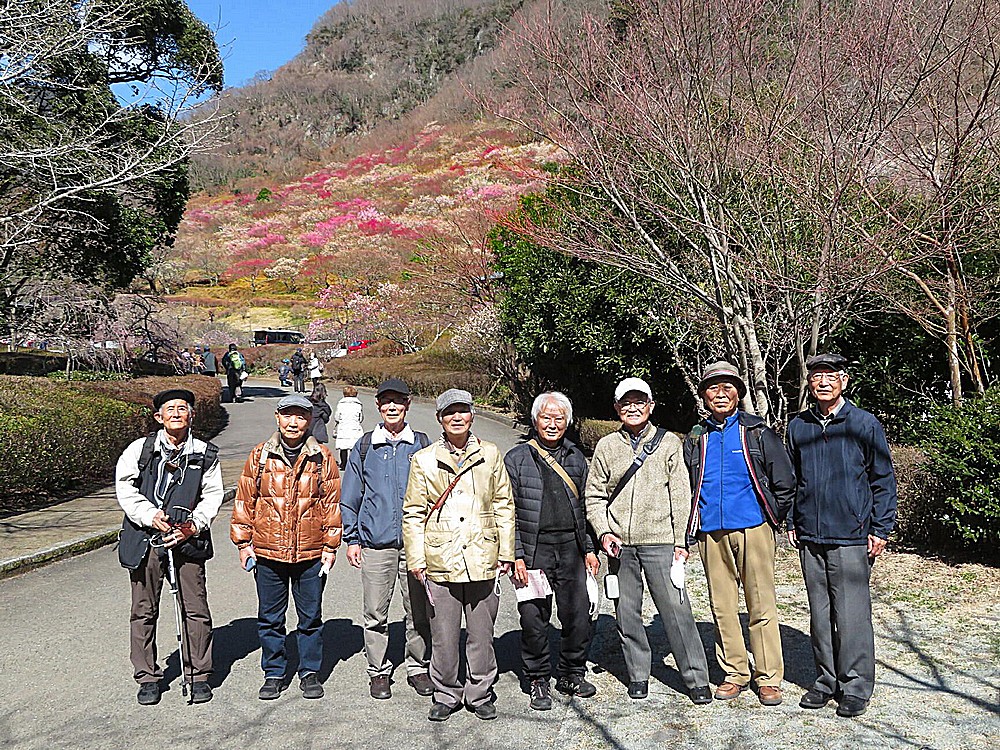 今日は、湯河原にある梅林の散策が計画され、10時過ぎには8名全員が湯河原駅に集合した。日中の温度18度と2月としては異常な絶好の天気に恵まれた一日でした。