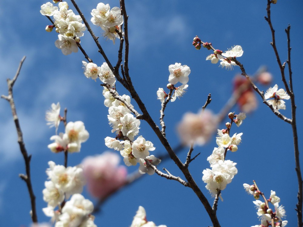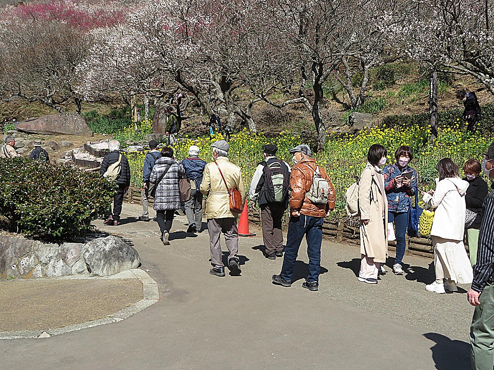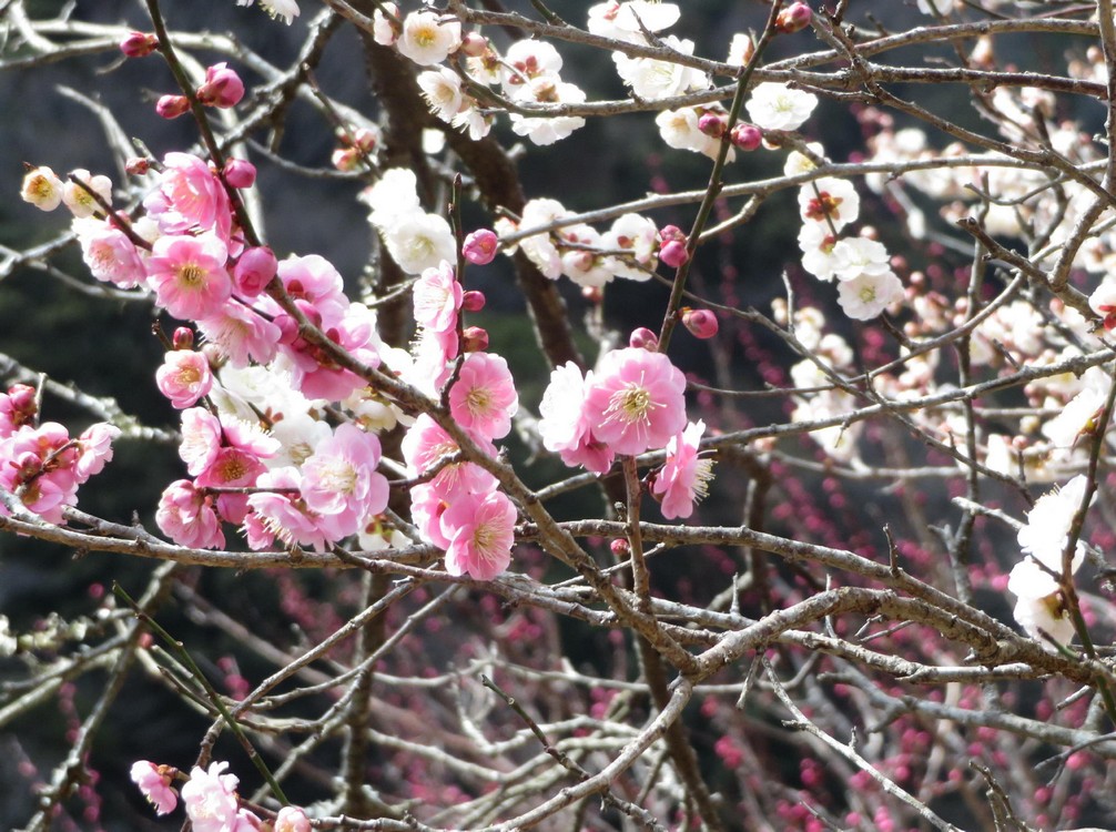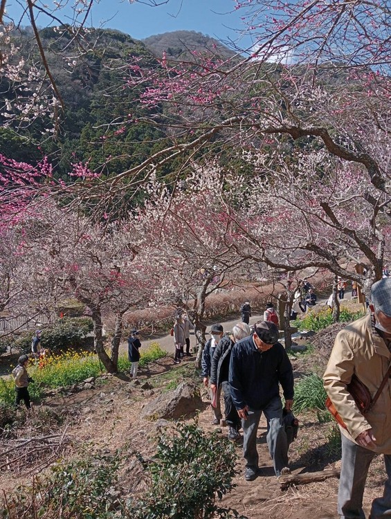 その後やや急な散策路をのぼり、白梅紅梅の中を行く。