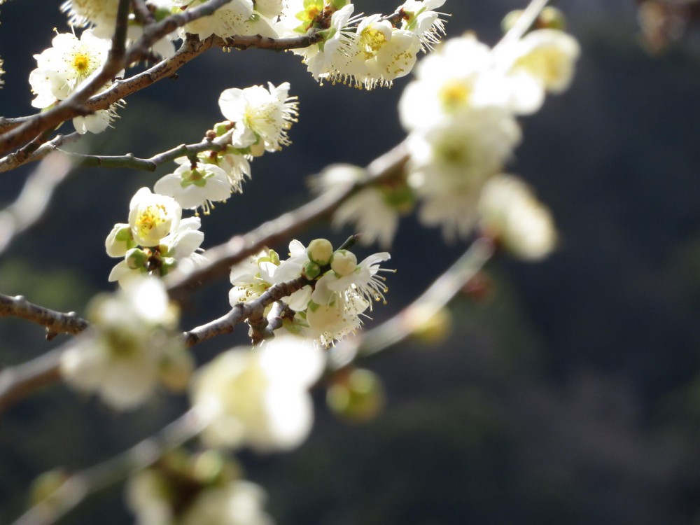 萼が緑色の梅(緑萼枝垂:リョウガクシダレ)などが見事に咲き誇っていた。