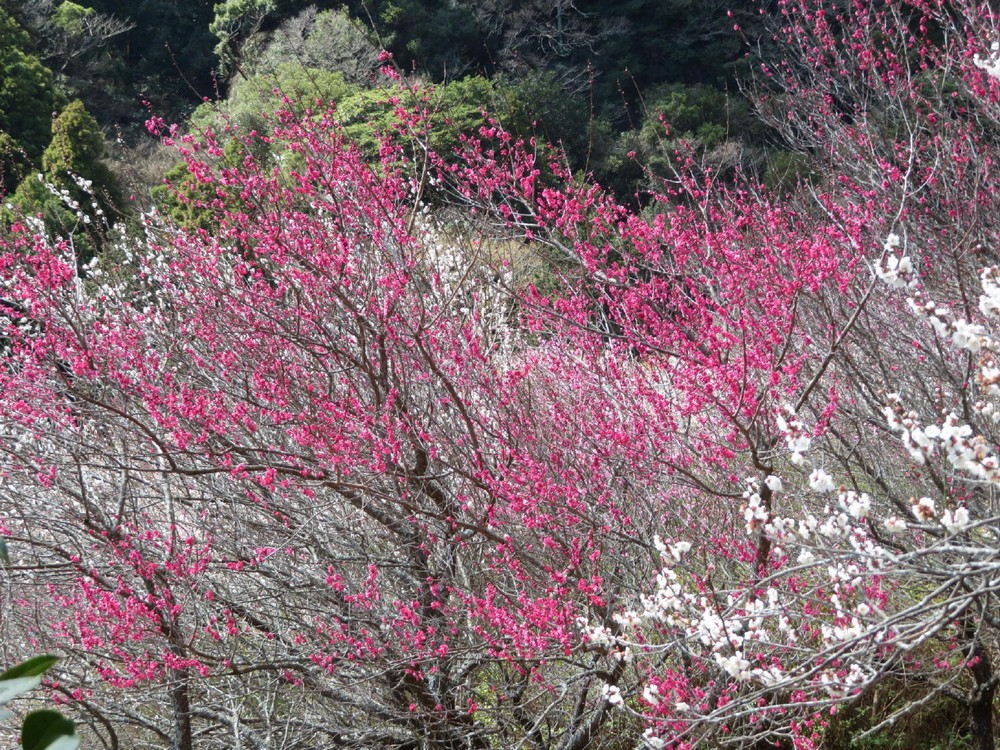 散策路上部からは、見事な紅白の梅の樹林も見られた。